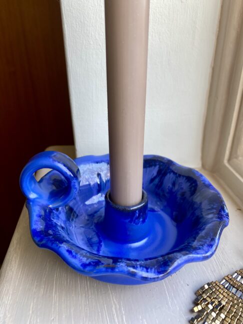 As a pre-loved item, this blue candlestick with a handle forms part of the circular economy. Adding artisanal pieces brings soul and a story into your home, not to mention a heritage decorative aesthetic.