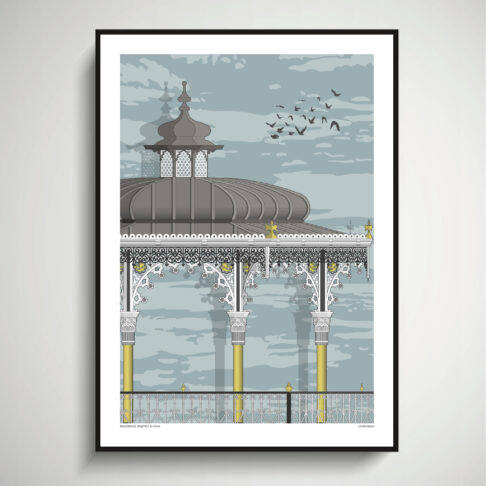 Which size? For wow factor and individual impact, opt for the larger format of an A1 print measuring 840 x 594mm of this striking print of Brighton bandstand. If you want to include this drawing as part of a smart gallery wall or eclectic grouping of artwork and photography – go for the smaller A2 version which measures 594 x 420mm.