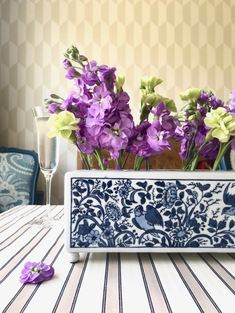 Contrast modern materials with heritage textiles in a colour-pop pastel palette; velvet floral upholstery, redolent of English country gardens, makes a great pairing with a Thai motif skirted side table in monochrome; and, colourful Asian ceramics are a decorative addition to a still life display and an unexpected but stylish juxtaposition in a sleek, contemporary bathing space.