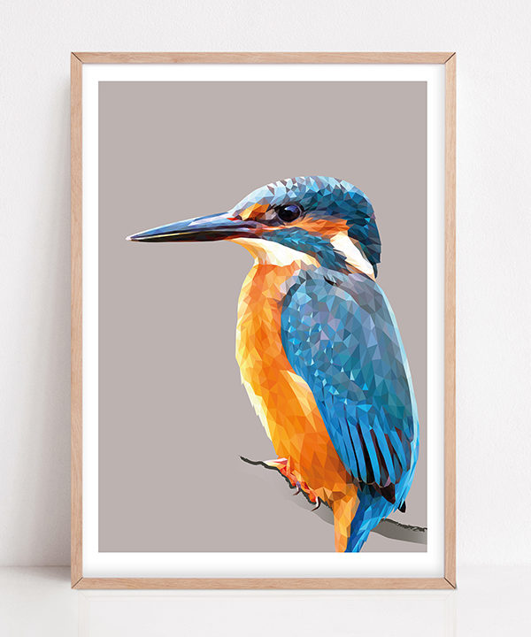 An eye-catching, vividly colourful, kingfisher bird print rendered digitally by wildlife artist Talia Giles. This portrait is one of a growing collection of Great British Birds designed by the artist and amongst whom number the Barn Owl, the Sparrowhawk, the Red-Legged Partridge and the Pheasant, all available through us at Telescope Style.