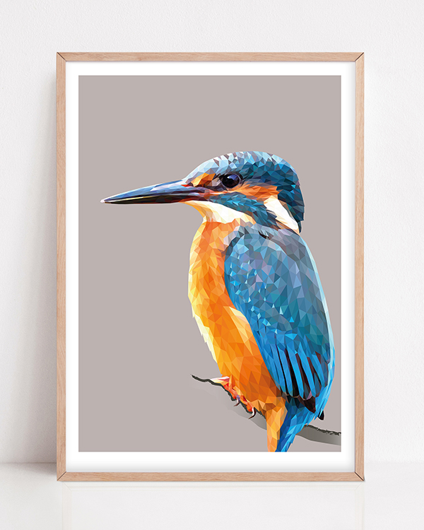 These artworks look equally striking in an industrial, urban loft setting as in a modern-rustic, rural abode. Depending on your backdrop, you may want to choose a pale frame to in effect ‘disappear’. A modern, white frame against the mount and white/pale walls will, for example, allow the bird image to leap out from the wall. Alternatively, you may opt to outline the artwork with a strong line for definition or a boundary between the Kingfisher and, say, a busy all-over wallpaper. If this is your preference, go for a slim, warm-hued wooden frame to enhance the artwork’s earthy palette.