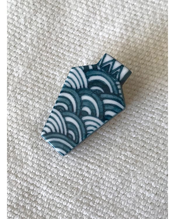 The Product: Porcelain jewellery brooch with Japanese waves design