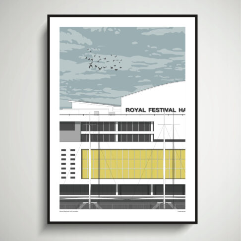 The Royal Festival Hall was opened in 1951, the first of a group of buildings that are collectively known as The Southbank Centre. Situated on the South Bank, the Grade I listed building was the first post-war structure to fall under the protection act. The project was led by Robert Matthew who worked with Leslie Martin, Edwin Williams, Peter Moro, Robin and Lucienne Day. This fine art print of the Royal Festival Hall